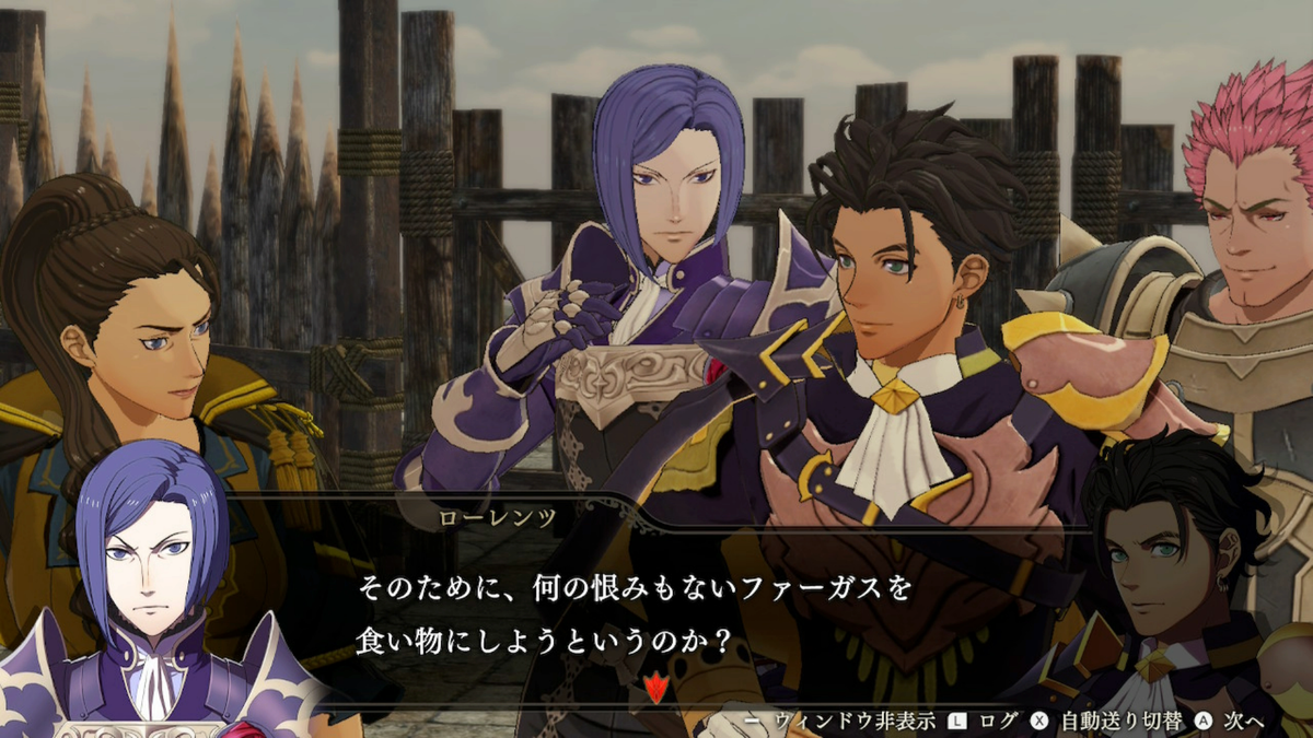 次に侵略への違和感。クロードに野望があることはわかったとしよう、しかしそれに皆まですんなり付いていくのはどうなのか。ローレンツはしっかり反発していたものの、なんやかんや自然と皆侵略に納得することに。その後の拠点会話を聞いても、皆「よくわからないけど戦争に勝てばフォドラがもっと良くなるんですよね」と若干思考停止してる感。これでいいのかヒルシュクラッセ。