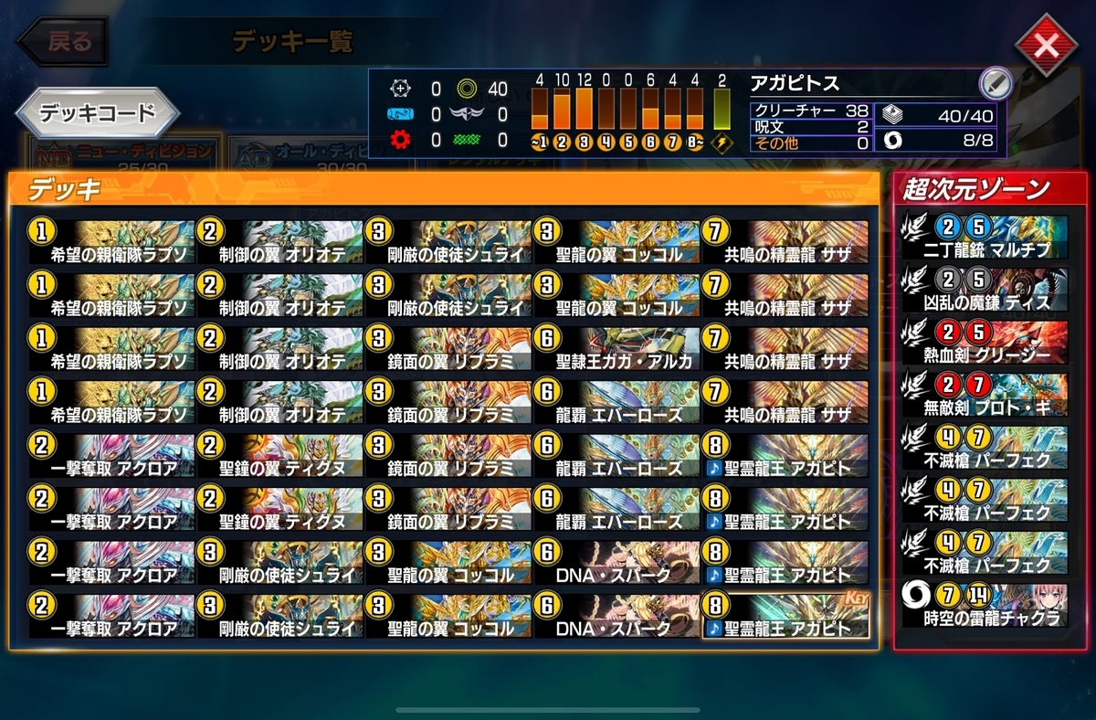 ADで色んなクリーチャーを踏み倒して楽しむことも考えたのですが、テンプレの光単サザンが結局一番アガピトスが輝くなと思いこの形にしました。