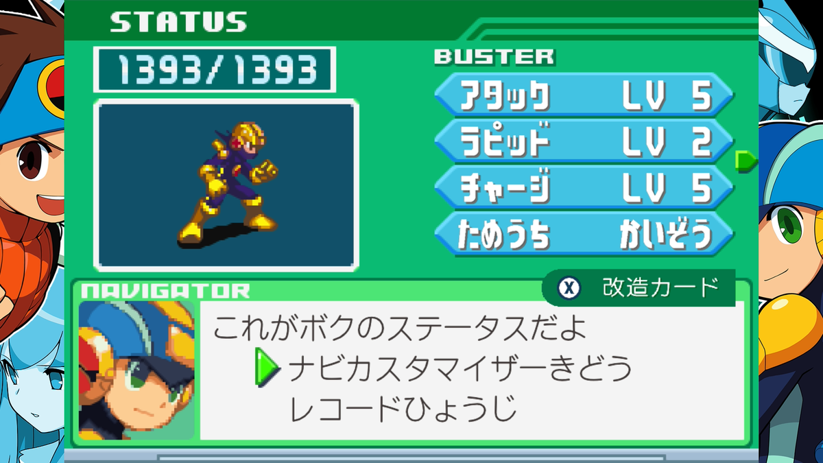 改造カード側でアビリティを付けにくいタンゴサポートとビートサポートがまず確定。この2つのサポートを組み込むにはバグストッパー無しでは厳しいのでバグストッパーも決定。残りは改造カードで付けれなかったスーパーアーマー、ファーストバリア、アンダーシャツを組み込み、バスターとHPも強化。