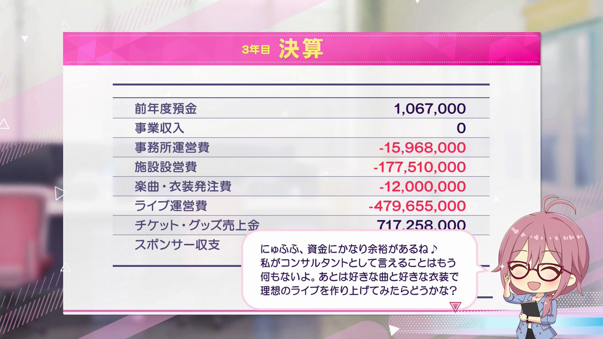3年目決算時点で小夢さんににゅふふ言ってもらったの初めてかもしれない。#シャインポスト pic.twitter.com/OCAaVXurtu