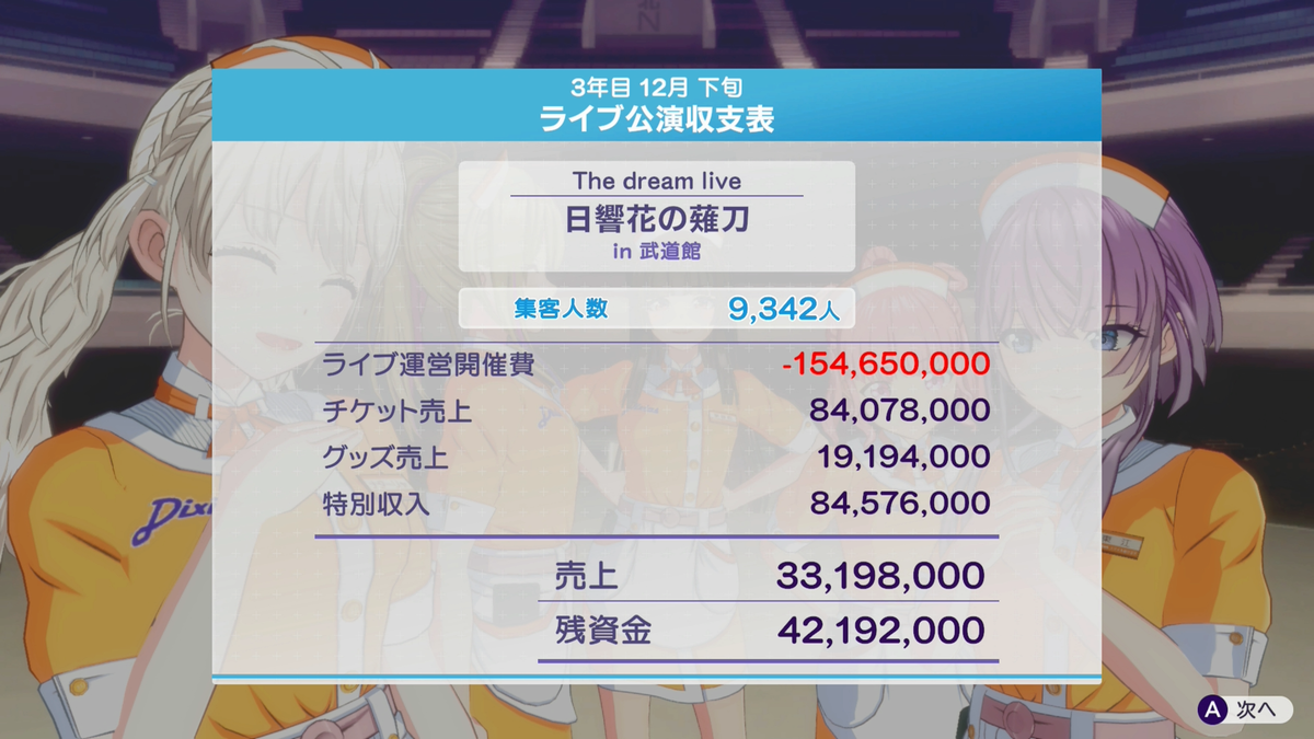 1期生武道館もなかなかの売上が立ちました。この時点で小夢さんににゅふふを言ってもらったのは初めてかも。