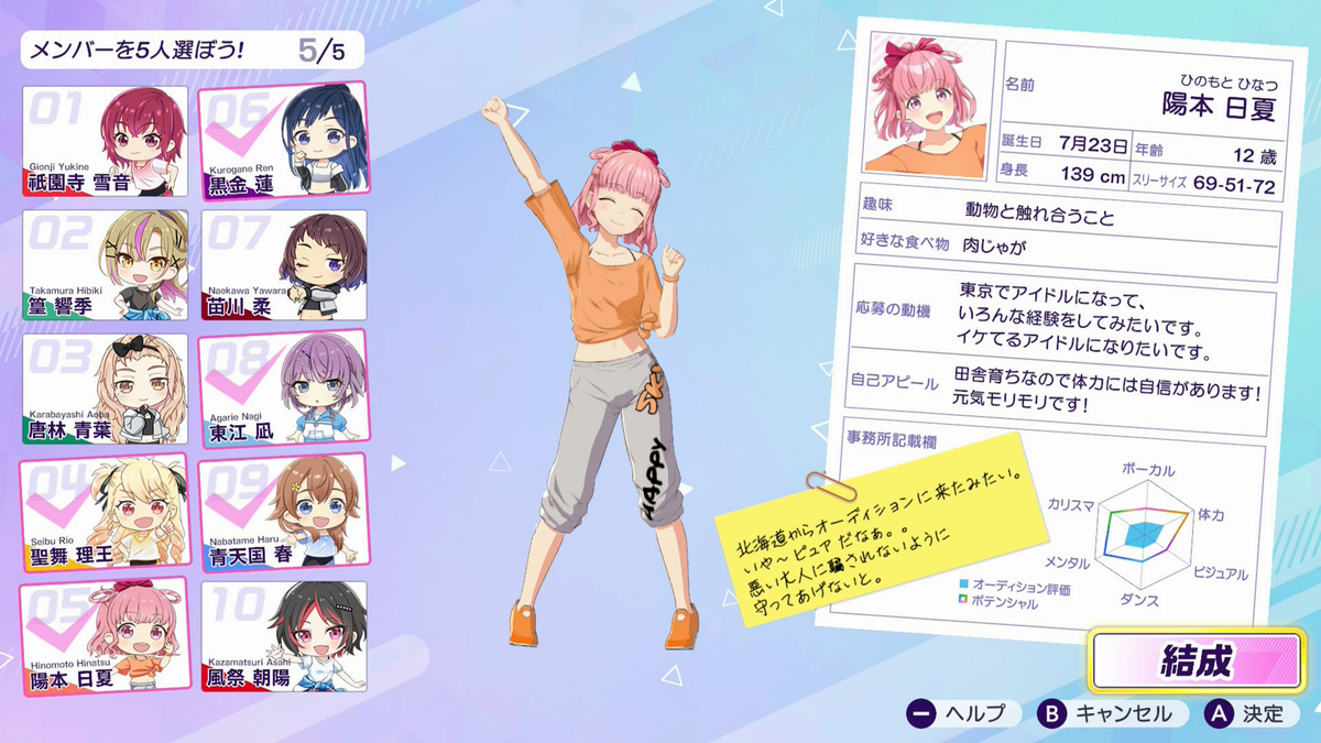 自分の最推しの5人が揃ったので、これは自分史上最高の1期生にするしかないと頑張ってプレイしてみました。
