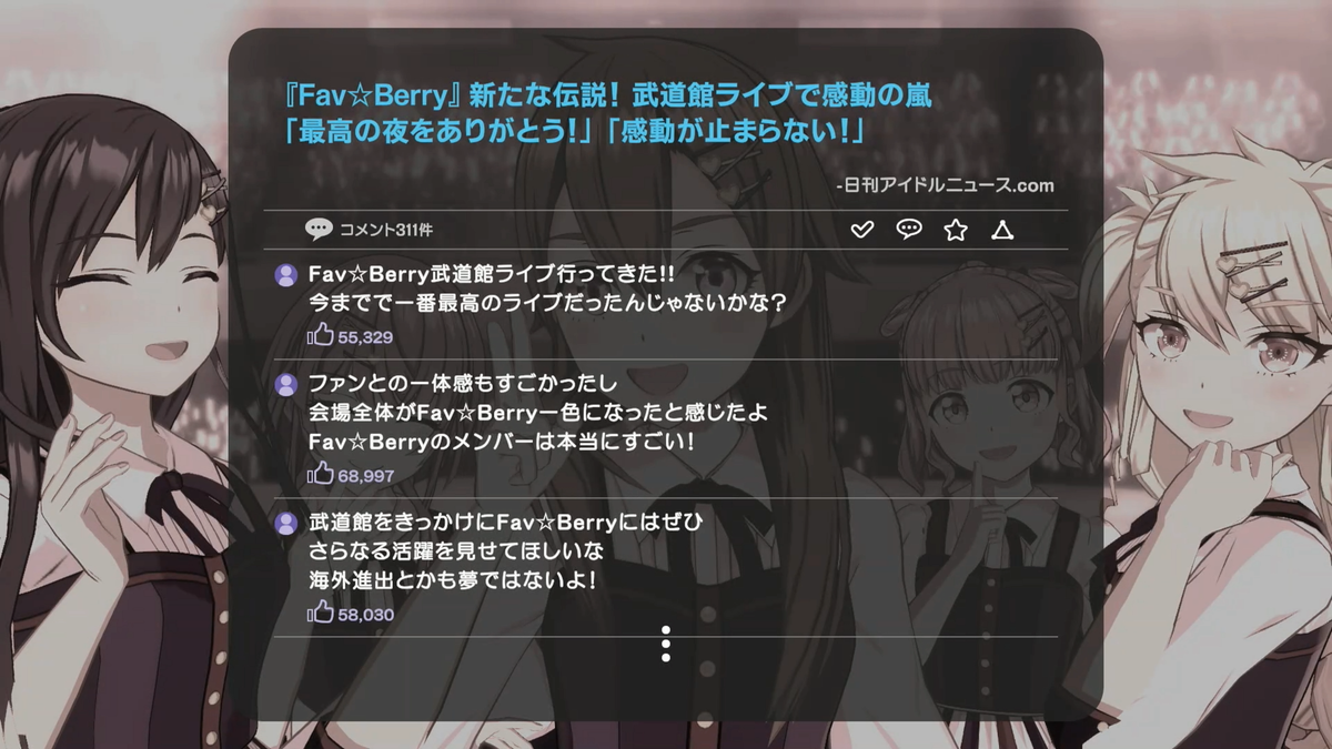 グループ名は悩んだものの、「自分のベストメンバー」という点を強調すべく、FavoriteのFavと事務所名「ブルーベリー・プロ」のBerryを取り、それを☆で繋ぎました。